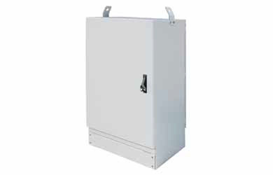 Body, Al, 2.5 mm, RAL 7035, single wall side panels, insulation thickness 12 mm, non inflammable; 3 cable entry boots are mounted in base for various sizes of cables, 2 removeable lifting brackets |